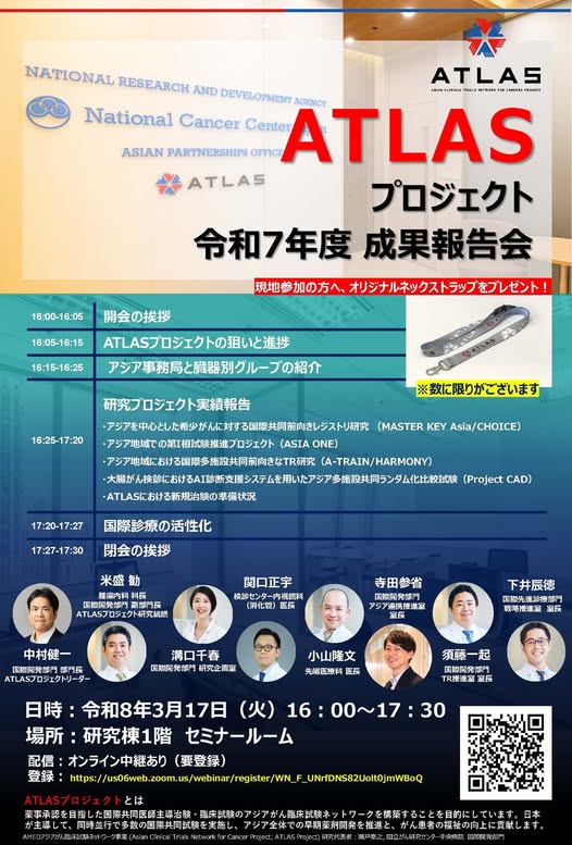 ATLASプロジェクト(Asian Clinical Trials Network for Cancers Project)は、国立がん研究センター中央病院が主導する、アジア地域におけるがん臨床試験ネットワーク構築プロジェクトです。2020年9月より日本医療研究開発機構(AMED)の支援を受けて開始されました。